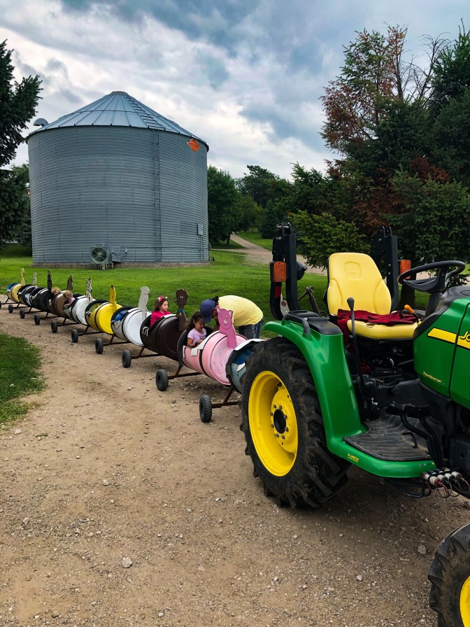 We started with taking a hayride out to their magical sunflower field; Sunflowers as far as the eye can see. Before we set off, the farm’s owner welcomed us all, and talked about how they used to deal primarily in wholesale–selling to big stores like Hy-Vee, Wal-Mart, and Baker’s. But this year, they decided to go in a new direction, focusing on their family, and in turn, the families of Omaha who can now come visit the farm and enjoy this experience.
