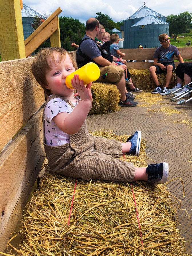 From the animal train ride (just $1), to visiting with farm animals, again they’ve thought of it all. What’s not pictured because we were having too much fun, big hay bails to jump and play on, a giant sand hill with toys, water pump duck races, a tricycle track with lots of trikes, and multiple spots to take cute photos!